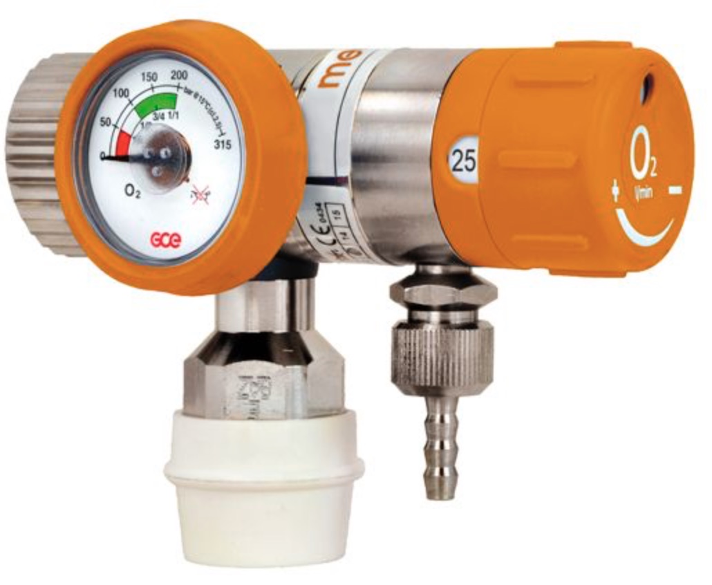 Sauerstoff-Druckminderer mit zwei Ausgängen.